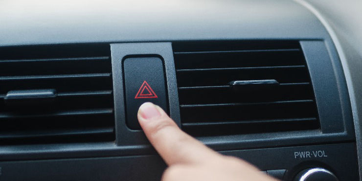 Para activar las luces intermitentes, debes apretar el botón que, generalmente, se ubica en el tablero, justo al medio de conductor y copiloto o junto al manubrio, con un símbolo de un triángulo rojo.