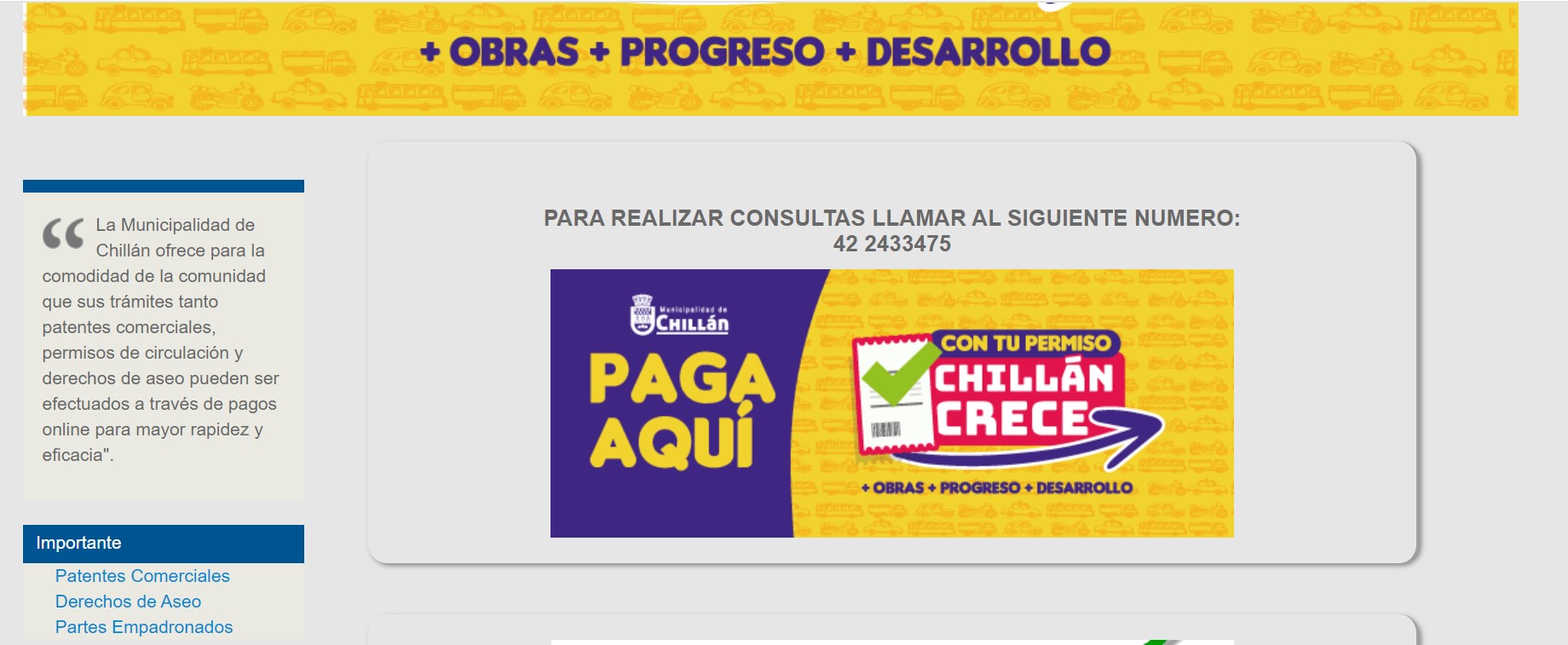 Aunque exista la facilidad de pagar los permisos de circulación por internet, también es posible regularizar esta situación de forma presencial en la Ilustra Municipalidad de Chillán.
